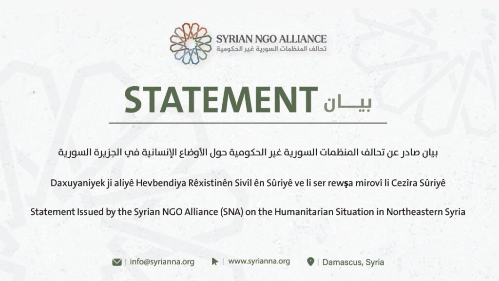 Statement Issued by the Syrian NGO Alliance (SNA) on the Humanitarian Situation in Northeastern Syria
